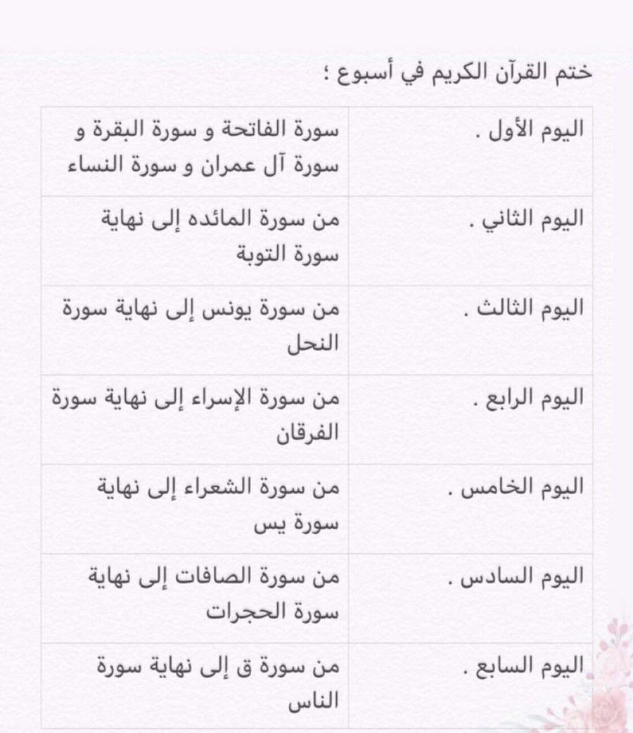 كيف تختم القرآن في عشرة أيام. طريقة لختم القران في اسبوعين وكل عااام وانتم بخير هذا ج دول يمگنك بإذن آلل ہ م ن خ تم القرآن أرب ع مرآت ب قدر خ تمة گل أس بوع روعه لشهر رمضان جــزاك الله خير موضوع مهم ويارب نكون من الختام القرآن. جدول ختم القرآن في رمضان في اسبوع جدول ختم القرآن في رمضان هذه طريقة سهلة لختم القرآن الكريم على طول الأسبوع يعني تقدر تختم القرآن الكريم أربع مرات في الشهر شهر رمضان وان شاء الله أتمنى من الجميع ختم القرآن.