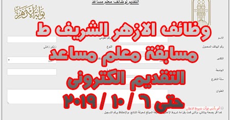 نموذج التقديم لوظائف مسابقة الازهر الشريف وظيفة معلم مساعد والتقديم حتى 6 10 2019