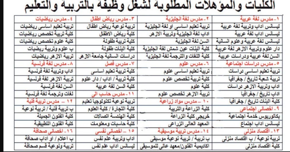 ننشر التخصصات المطلوبة في مسابقة التربية والتعليم بقنا النجعاوية