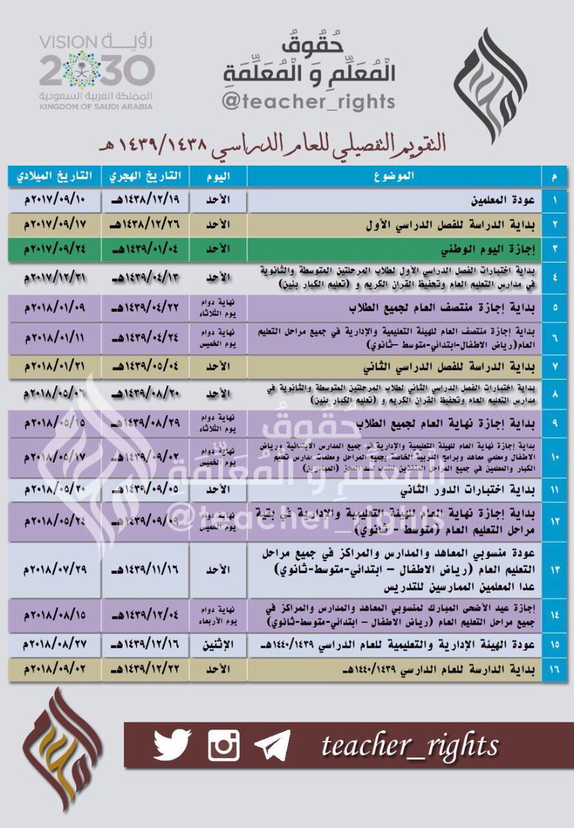 حقوق المعلم والمعلمة وواجباتهما On Twitter التقويم الدراسي للعام الدراسي الحالي 1438 1439هـ حقوق المعلم والمعلمة رتويت