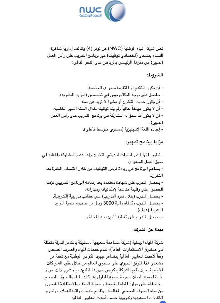 وظائف نسائية En Twitter وظائف شاغرة Jobs Km شركة المياه الوطنية عن 4 وظائف إدارية شاغرة للرجال والنساء عبر تمهير طريقة التقديم التقديم متاح حاليا من خلال الرابط التالي Https T Co Jphb5cs3rq