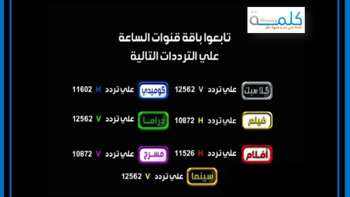 تردد قنوات الساعة الجديد 2019 على النايل سات مسرح أفلام كوميدي دراما كلمة دوت أورج