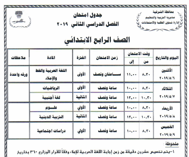 جدول امتحانات الترم الثاني 2019 المرحلة الابتدائية محافظة الشرقية ومواعيد اختبارات نهاية العام 2018 2019 جدول امتحانات الترم الثاني 2019 محافظة الشرقية نهاية العام المرحلة الابتدائية