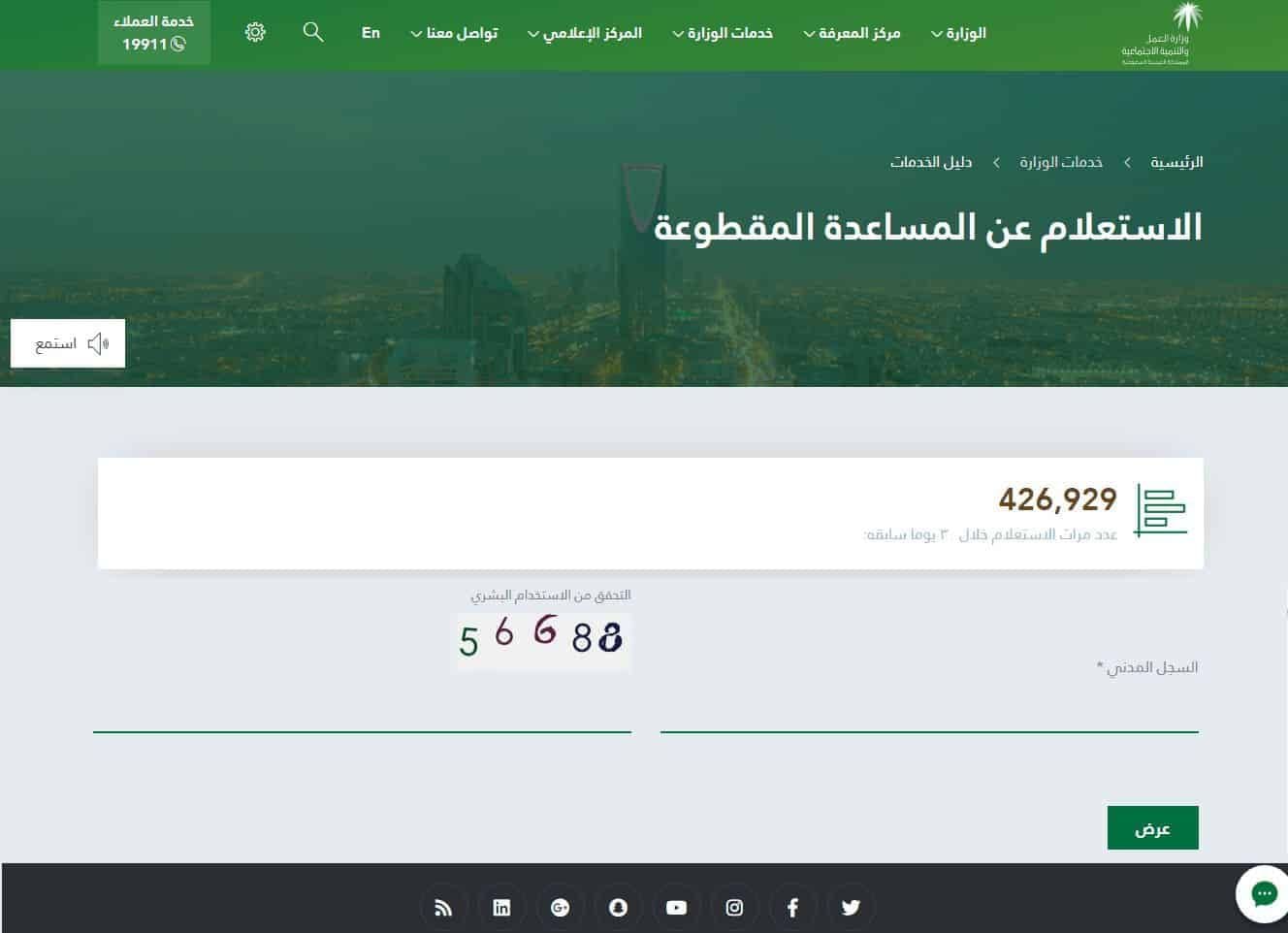 الاستعلام عن المساعدة المقطوعة 1442 في السعودية مجان ا عبر رابط الضمان الاجتماعي شبكة المشهد الإخبارية