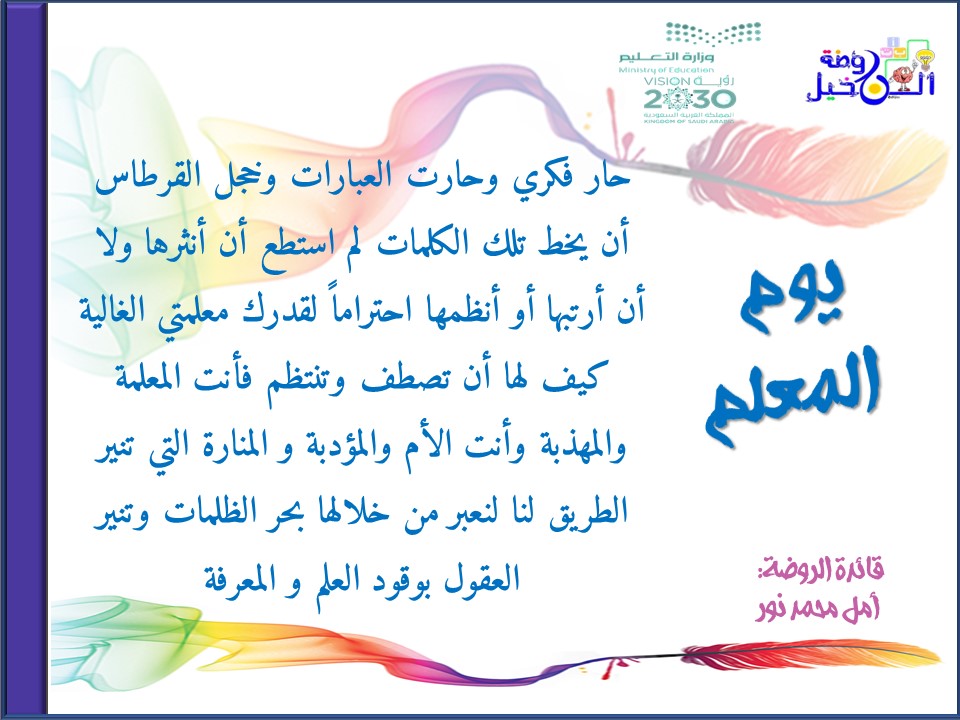 عبارات عن يوم المعلم تويتر. أشعلت روحك في الآفاق مصباحا ورحت تزرع في الأوطان أرواحا. المعلم هو نور يخرج الطلاب من ظلمة جهلهم إلى نور المعرفة. المعلم نور يخرج به الطلاب من ظلمات جهلهم إلى نور العلم.