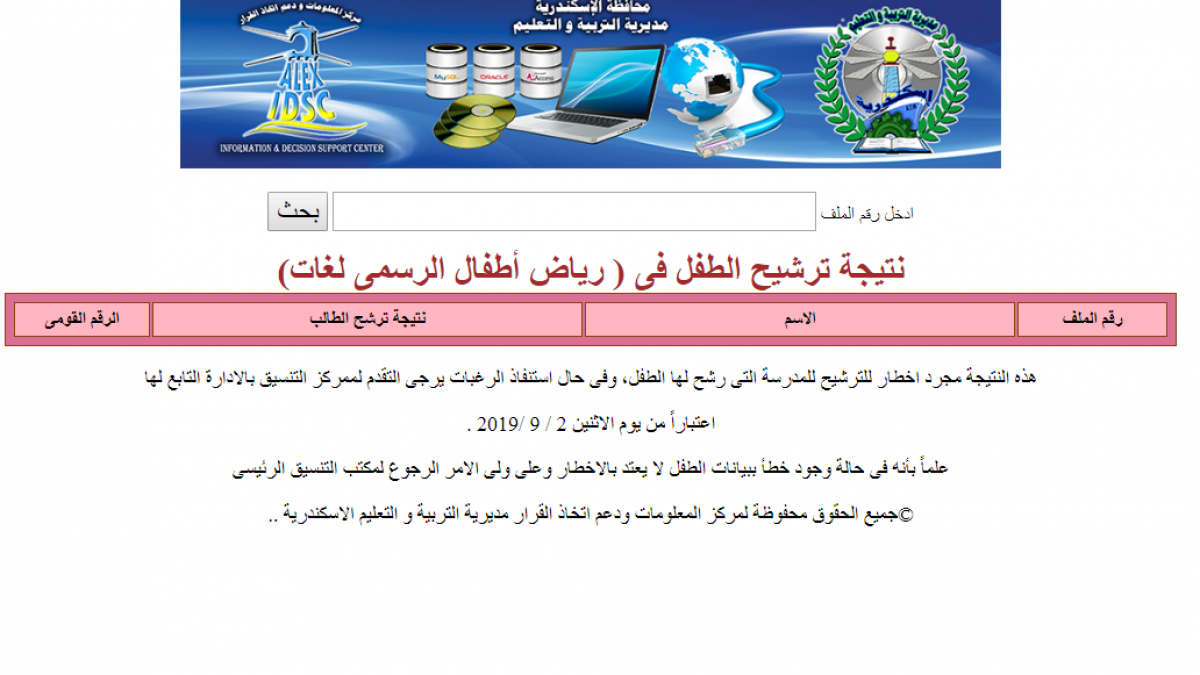 الآن رابط نتيجة تنسيق رياض الأطفال محافظة الإسكندرية 2019 2020 بالرقم القومي والملف جميع الإدارات التعليمية عبر موقع مديرية التربية والتعليم Alex Edu Com كلمة دوت أورج