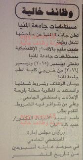 وظائف اليوم وظائف خالية فى جامعة المنيا الثلاثاء 10 05 2016 وظائف خالية 2014 عمل 1435 شواغر Wazeef Jridt Alyom Jobs In Cairo