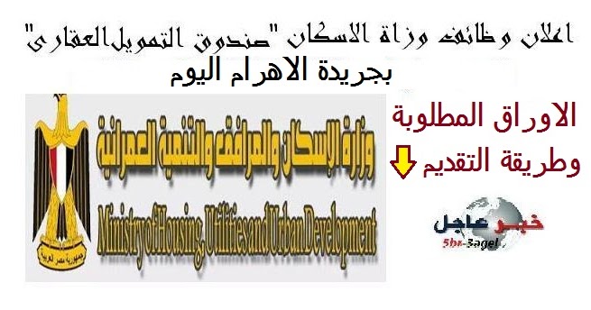 وظائف وزارة الاسكان صندوق التمويل العقارى مؤهلات عليا ودبلومات التقديم الان