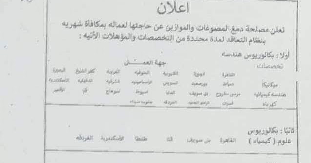 وظائف حكومية مصلحة دمغ المصوغات والموزاين وزارة التموين بجميع المحافظات
