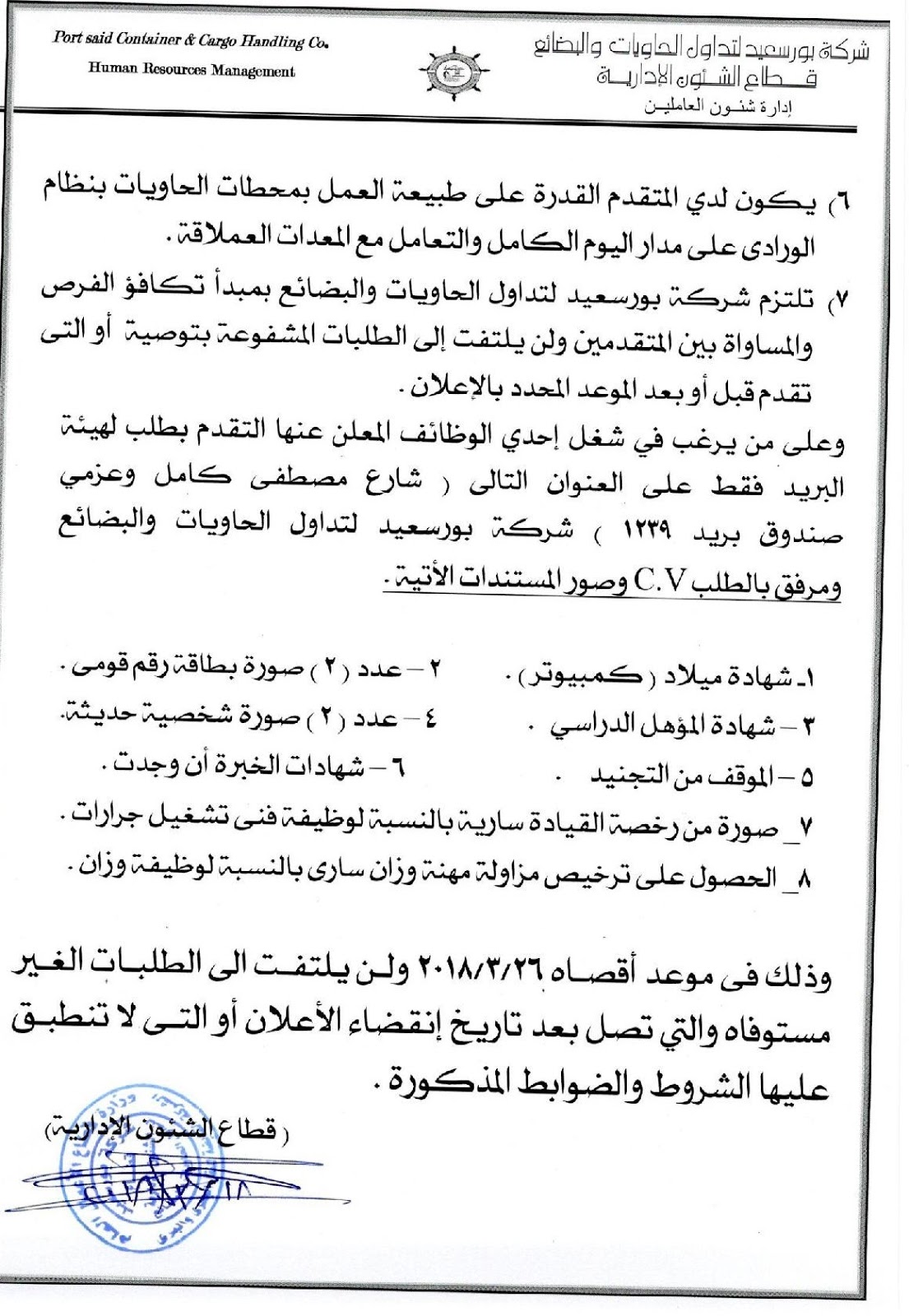 وظائف خالية ببورسعيد لتداول الحاويات والبضائع الباز أفندى