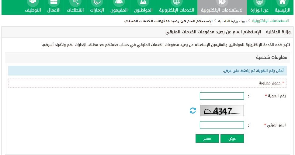 الاستعلام عن رصيد الخدمات المتبقي لدي وزارة الداخلية السعودية